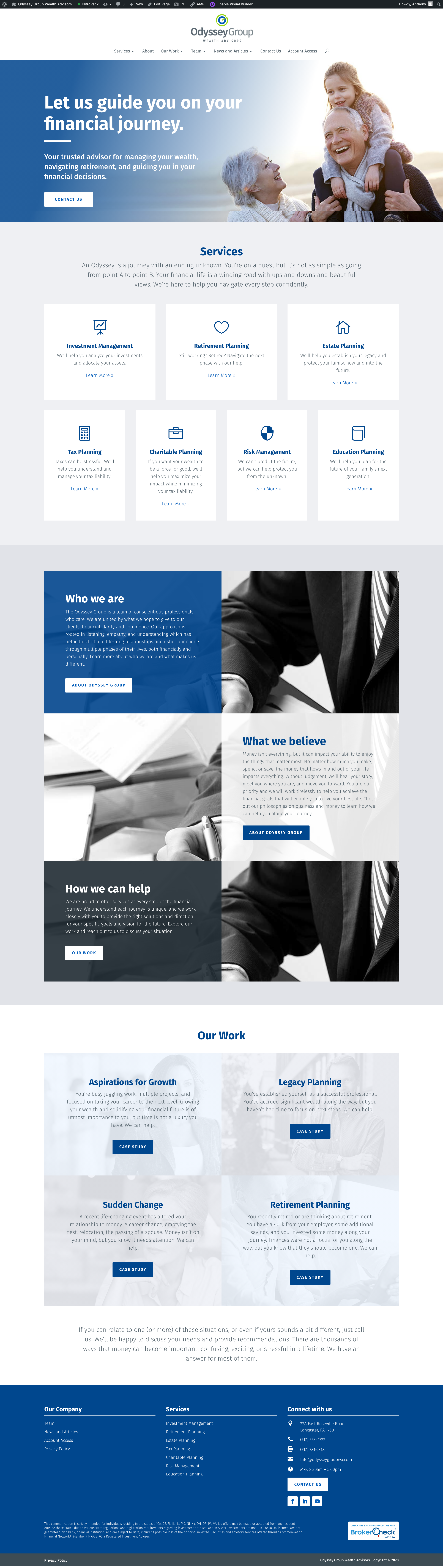 Odyssey Group Wealth Advisors is a successful wealth management and financial advising firm located in Lancaster, Pennsylvania. The Odyssey team reached out to Gaenzle Marketing to help with strategic marketing direction and a website redesign as the firm looked to enhance their brand as they continued to expand within the region.