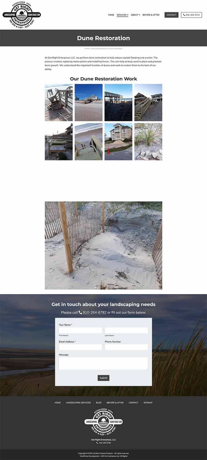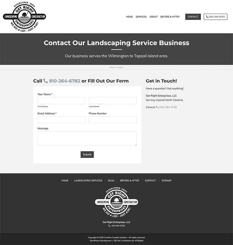 Get It Right Enterprises is a high-quality landscaping service company serving the North Carolina coast. WPdigital's team gave this company a web presence to help showcase their services and help grow their business.