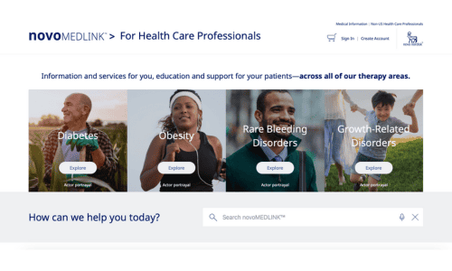 novoMEDLINK creates a superior customer experience for Health Care Providers by consolidating all of Novo Nordisk’s product information, services, clinical education, and patient support into a single, easy-to-use site that spans all therapy areas. It lays the groundwork for highly data-driven, personalized experiences that will drive ongoing HCP engagement and create efficiency gains that increase speed to market and reduce overall spend on website maintenance.