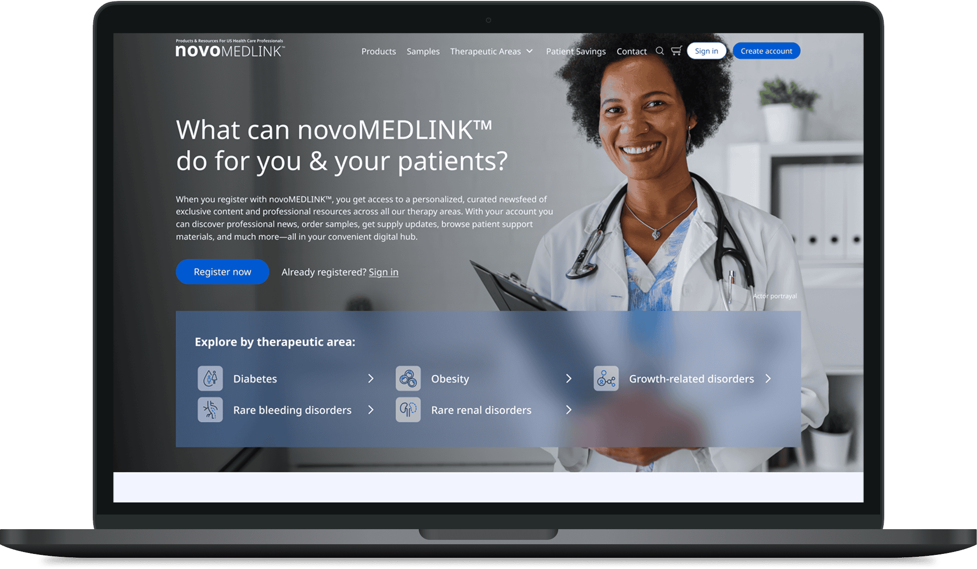Owned and managed by Novo Nordisk, novoMEDLINK™ is a customer website portal for healthcare professionals (HCPs) offering personalized and informative resources. The site spans six therapeutic areas, including diabetes, obesity, growth-related disorders, rare bleeding disorders, MASH, and rare renal disorders. After conducting an industry audit of 40 competitor and best-in-class websites, three key challenges with the existing website were identified: complex navigation, too many clicks to reach relevant content, and branded content was hard to find due to required elements. After five years, the site was ready for an innovative refresh to improve the user experience. The result was more than an update, however—the project proved to be a reimagining of what a best-in-class pharma hub can be. Compliance and flexibility were achieved by rethinking the interaction of safety information, banners, and layout, creating a more intuitive structure that improves access to essential information across all 22 HCP-facing “Brand Pro” websites hosted on novoMEDLINK™. Enhanced and consistent user experiences are supported through flexible layouts made possible by reorganized content, restructured navigation, dismissible banners, and user-initiated, partially collapsible important safety information. Innovation is reflected in personalized landing pages and site-wide customization that now enable faster access to therapeutic-area-specific content, while content carousels offer tailored content delivery based on users’ interest with best-in-class functionality. A better experience was delivered through a cleaner, more intuitive content structure needed to ease site navigation, with an overhaul that more clearly delineated content and included a partial navigation menu takeover with an Apple-inspired blurred background to better ground users in the experience. The result: in just three months following launch, the redesigned novoMEDLINK™ was already transforming how HCPs engage with the site, including a 66% bump in traffic, 2x more pages viewed, and a 14% increase in conversions. Together, these metrics strongly indicate that the user experience has been significantly improved as a result of the redesign—evidence that healthcare professionals are more easily finding the content they need to better support patient care.
