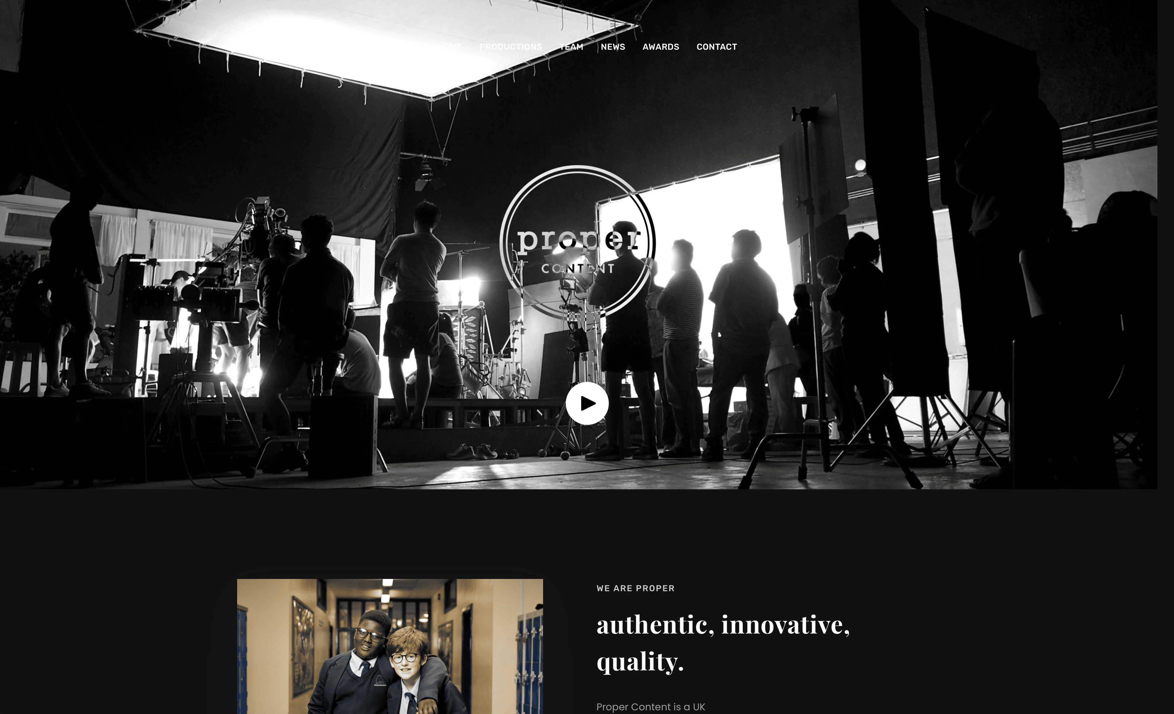 Award winning website for Proper Content. Proper Content is a UK independent production company launched in 2016 that specialises in distinctive and talked-about factual entertainment and documentary programming.