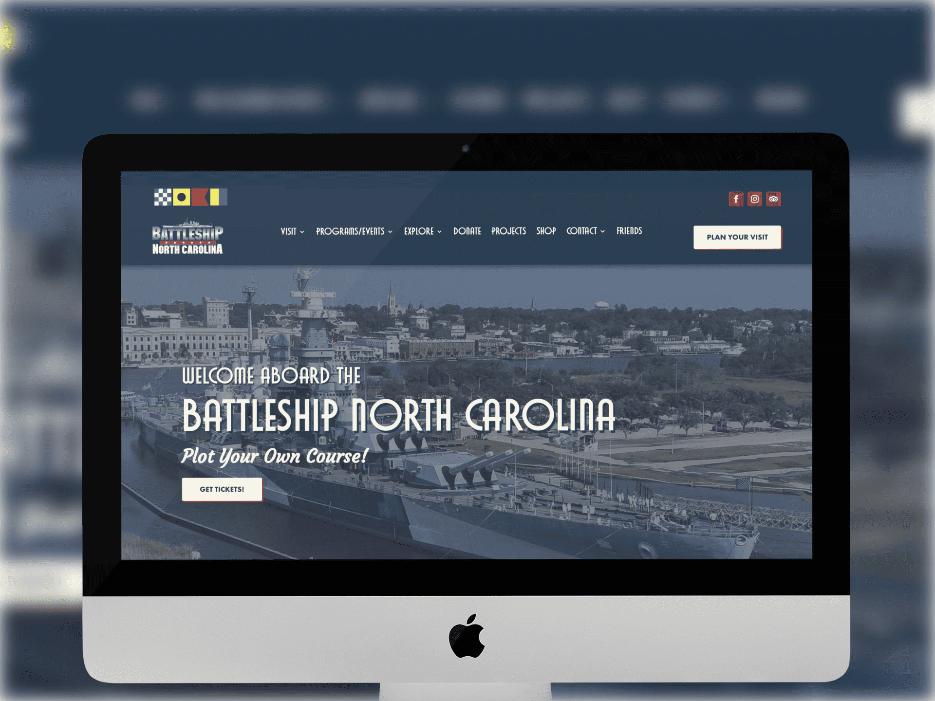 The Battleship North Carolina is a national landmark located in Wilmington, North Carolina and is a famous World War II memorial floating on the water. They approached Wide Open Tech in desperate need of a redesigning a more modern website that also provides the 1950s-60s look, which is the time period the Battleship NC became a memorial. Our team leveraged a color scheme variance that is a close tie-in to the nautical flags worn by the ship. We used wavy shapes and sunshine graphics that nod to the water and beautiful sunrises and sunsets that are often the backdrop of this memorial. The site leverages classic icons from the 1950s-60s timeframe to give this feeling of history, and we use extensive image galleries that provide a look inside the museum.