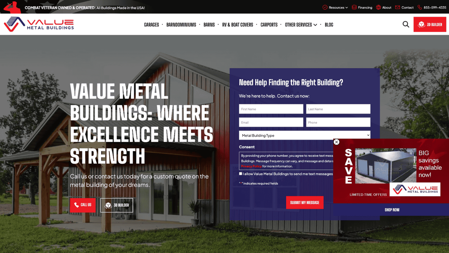 As their business grew, Value Metal Buildings recognized the need for a modern, user-friendly website to better showcase their offerings to an expanding customer base and stand out in a competitive market. To achieve this, Value Metal Buildings partnered with TheeDigital to design and develop a custom WordPress website that enhances their online presence to nurture and drive more qualified leads.